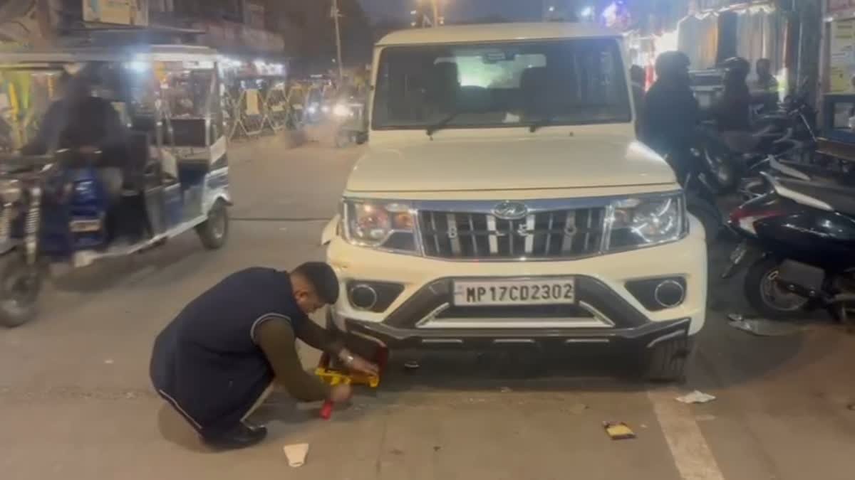 रीवा में सख्त हुई ट्रैफिक पुलिस, वाहनों को लगाई बेड़ियां