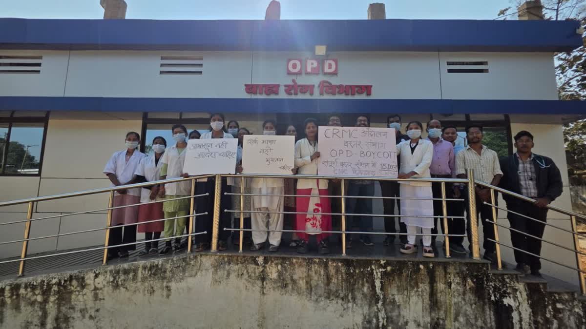 सुकमा: छत्तीसगढ़ रूरल मेडिकल कोर (CRMC) की लंबित प्रोत्साहन राशि के भुगतान और योजना को बंद किए जाने का विरोध हो रहा है. सोमवार से सुकमा जिले सहित पूरे बस्तर संभाग के जिला चिकित्सालयों, सामुदायिक स्वास्थ्य केंद्रों और प्राथमिक स्वास्थ्य केंद्रों में संपूर्ण ओपीडी सेवाओं का बहिष्कार किया गया.