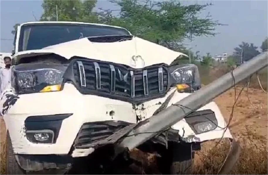 स्कॉर्पियो के उड़े परखच्चे! बाइक सवार को बचाने के चक्कर में खंभे से जा टकराई तेज रफ्तार गाड़ी; बाल-बाल बची जान